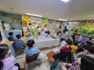 테이블 위에는 학용품, 장난감, 간식, 캐릭터 용품 등 아이들이 좋아할 만한 물건들이 가득했습니다. “이거 살까?”, “이건 쿠폰 몇 장이에요?” 하며 친구들과 이야기 나누는 모습 속에서 자연스럽게 선택과 계산, 기다림과 양보를 배우는 시간이 되었습니다. 쿠폰으로 직접 물건을 고르고 교환하는 경험은 아이들에게 단순한 소비가 아니라, 자신의 노력으로 얻은 보람을 느끼게 해주었습니다.