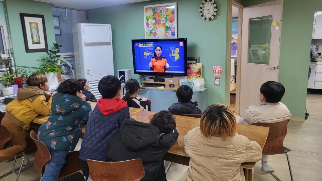 꿈터지역아동센터에서는 아이들의 안전을 최우선으로 하기 위해 정기적인 소방대피 훈련을 진행하고 있습니다. 이번 훈련은 평소보다 더욱 실제 상황에 가까운 흐름으로 구성하여, 아이들이 화재 발생 시 어떤 순서로 행동해야 하는지 직접 체험하며 배울 수 있도록 했습니다. 훈련은 먼저 활동실에서 소방안전 영상 시청으로 시작되었습니다. 영상 속 소방관은 화재 시 대피가 최우선이라는 점을 강조하며, 작은 불일 경우에만 소화기를 사용할 수 있는 기준과 올바른 사용법을 상세히 설명했습니다. 아이들은 화면을 집중해 바라보며 상황별 행동 요령을 배우고, 위험 상황에서 당황하지 않고 판단하는 힘을 기르는 시간을 가졌습니다. 영상 시청 후, 실제로 우리 센터 환경을 기준으로 한 가상 상황 토론이 이어졌습니다. 꿈터지역아동센터는 4층에 위치해 있어 아래층인 3층에서 화재가 발생할 경우 어떻게 대피해야 하는지가 중요한 학습 포인트였습니다. 아이들은 “바로 밖으로 나간다”, “연기가 많으면 위층으로 간다”, “옥상으로 대피해서 구조 신호를 보낸다” 등 다양한 의견을 제시했습니다. 특히 옥상 대피 후 밝은 옷이나 천으로 구조 신호를 보내는 방법을 정확히 알고 있는 친구도 있어, 교사는 즉시 칭찬하며 다른 아이들도 함께 배울 수 있는 긍정적 분위기를 만들었습니다. 아이들은 각자의 생각을 친구들 앞에서 차례로 발표하며 의견을 나누었고, 다른 친구들의 의견에도 귀 기울이며 서로 다른 대처 방식을 비교해 보는 시간을 가졌습니다. 이 과정은 단순한 안전교육을 넘어, 아이들에게 ‘상황을 판단하고 설명하는 능력’, ‘타인의 의견을 경청하는 태도’를 키워주는 교육적 효과도 있었습니다. 이후 실제 대피 훈련이 진행되었습니다. 센터에 비상벨이 울리는 상황을 가정하고 아이들은 코와 입을 막고 몸을 낮춘 채 계단을 따라 신속히 이동했습니다. 몇몇 아이들은 연기를 흡입하지 않기 위해 몸을 최대한 숙이고 손으로 얼굴을 보호하며 내려가는 등 실제 상황에서의 행동을 잘 수행했습니다. 교사들은 이동 과정에서의 안전을 꼼꼼히 확인했고, 아이들은 차분히 그러나 빠르게 1층까지 대피를 완료했습니다. 대피 후에는 안전한 장소에 집결하여 인원을 확인하고, 훈련 전체를 다시 복귀하면서 어떤 점이 잘 되었고 어떤 부분을 더 연습할 필요가 있는지 함께 점검했습니다. 이번 소방대피 훈련을 통해 아이들은 화재 발생 시 가장 중요한 것은 ‘대피 우선’이라는 사실을 분명히 인지했습니다. 또한 화재의 규모에 따라 119에 신고하는 방법, 작은 불에서만 소화기를 사용할 수 있는 원칙, 연기 속에서의 이동법 등 실제로 도움이 되는 구체적인 행동 요령을 몸으로 익혔습니다. 꿈터지역아동센터는 앞으로도 아이들이 안전한 환경에서 생활할 수 있도록 정기적인 훈련과 교육을 계속해서 이어갈 예정입니다. 안전은 반복을 통해 몸에 익히는 것이 가장 효과적이며, 이번 훈련 또한 아이들에게 중요한 경험이 되었습니다.앞으로도 아이들이 건강하고 안전하게 자랄 수 있도록 지속적인 관심과 지도를 이어가겠습니다. 다음 소방대피훈련시에는 지진에 대해 알아볼 예정입니다.
